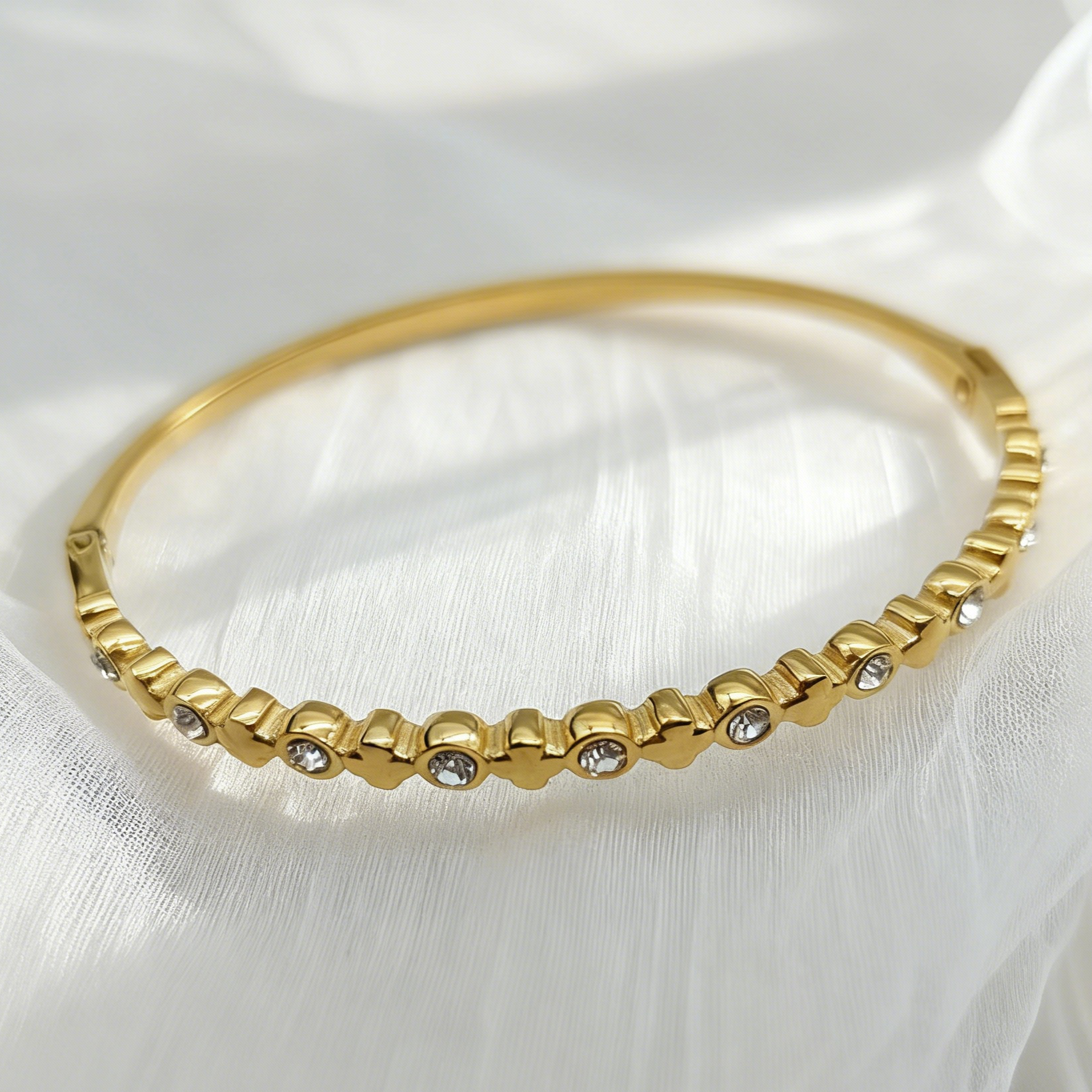 変色しにくく、アレルギーが出にくい医療用ステンレス。PVDコーティングにより、高級感のあるゴールドの輝きが長持ちします。